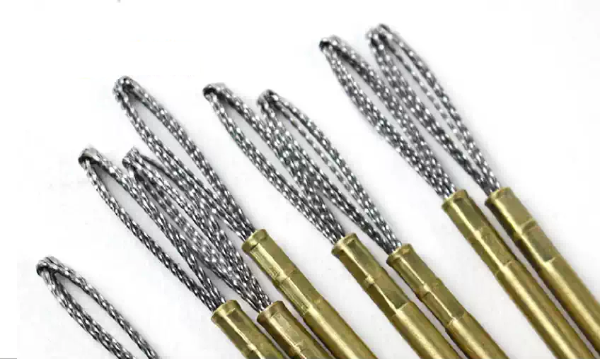 When rotating, the centrifugal force of the brush head generates a powerful grinding force without damaging the shape or size of the hole. Ideal for CNC machining centers, milling machines, drilling machines, automated machine tools, robotic arms, hand power drills, etc. It primarily removes burrs from internal holes, crosshole burrs after drilling, and improves the roughness of metal parts' internal holes...... It is suitable for grinding harder burrs.