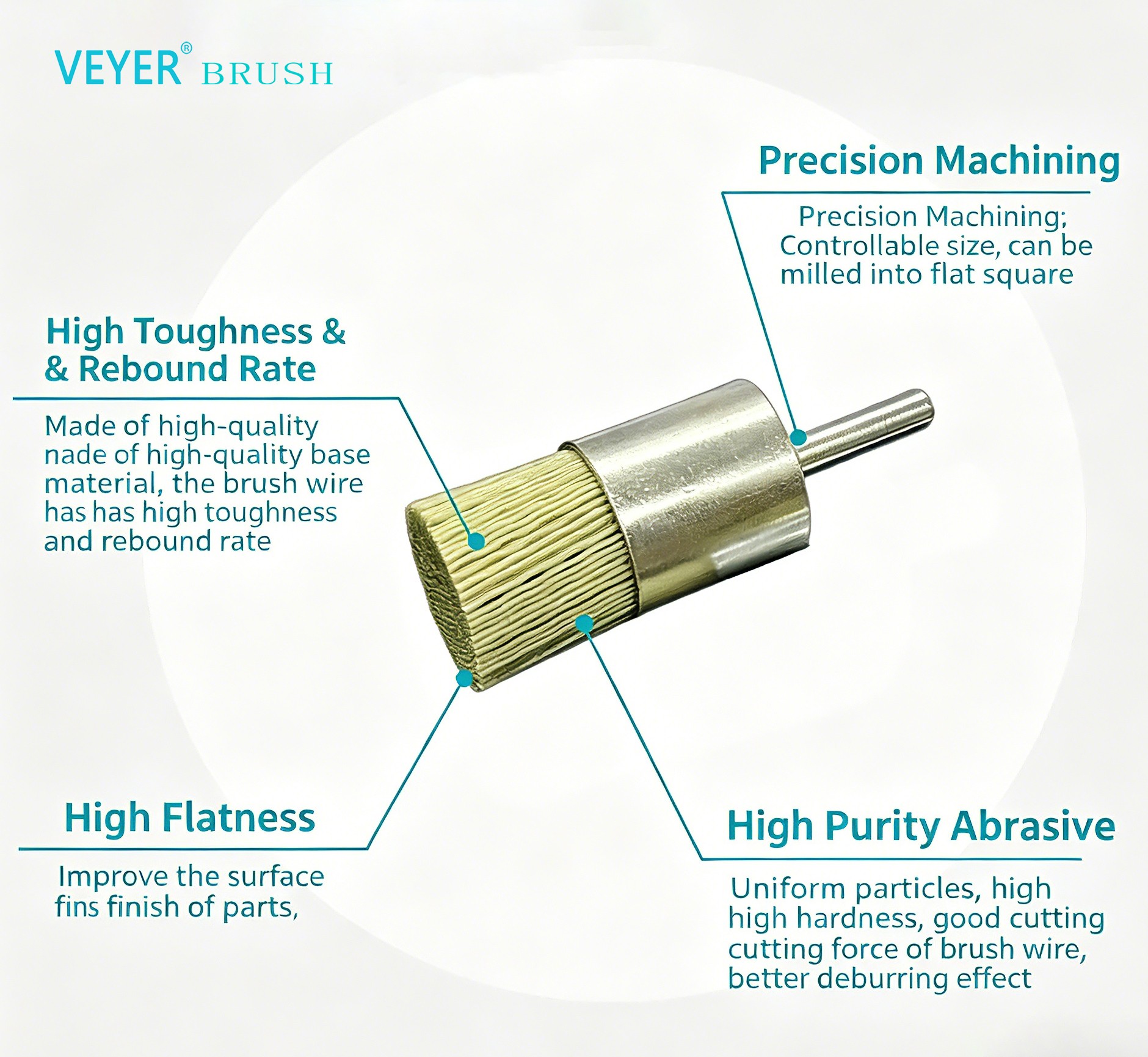 ⭕Features: 1--Durable & Cost-effective More durable than ordinary abrasive nylon brushes. 2--Excellent End Surface Grinding They deliver powerful grinding efficiency for CNC machining, easily removing burrs under 0.2mm. 3--Time-saving & CNC Robotic Deburring Specially designed for CNC and automatic machines. 4--No Damage to Workpieces Gentle deburring and polishing with negligible impact on metal surfaces.