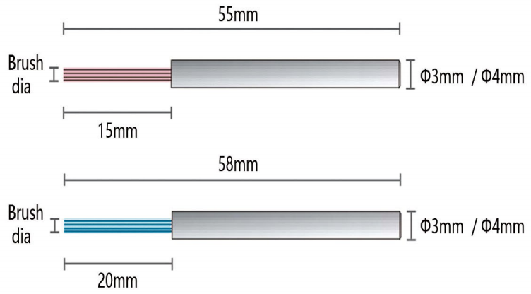 ·High quality and uniform ceramic fiber bristles, finely ground, without damage to the workpiece, especially suitable for burrs on the micro hole and inner grooves of metal parts. The brush diameter is very small, suitable for polishing ultra small aperture parts and fine grinding.