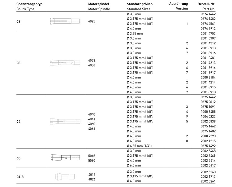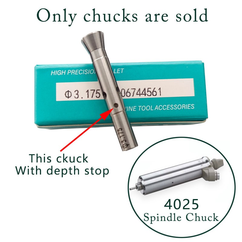 A---Sizes of VEYER High-precision chuck 20018914 from diameter 2.35mm, 3.0mm, 3.175mm(1/8"), 4.0mm.....You can choose the clamp head according to your spindle models.