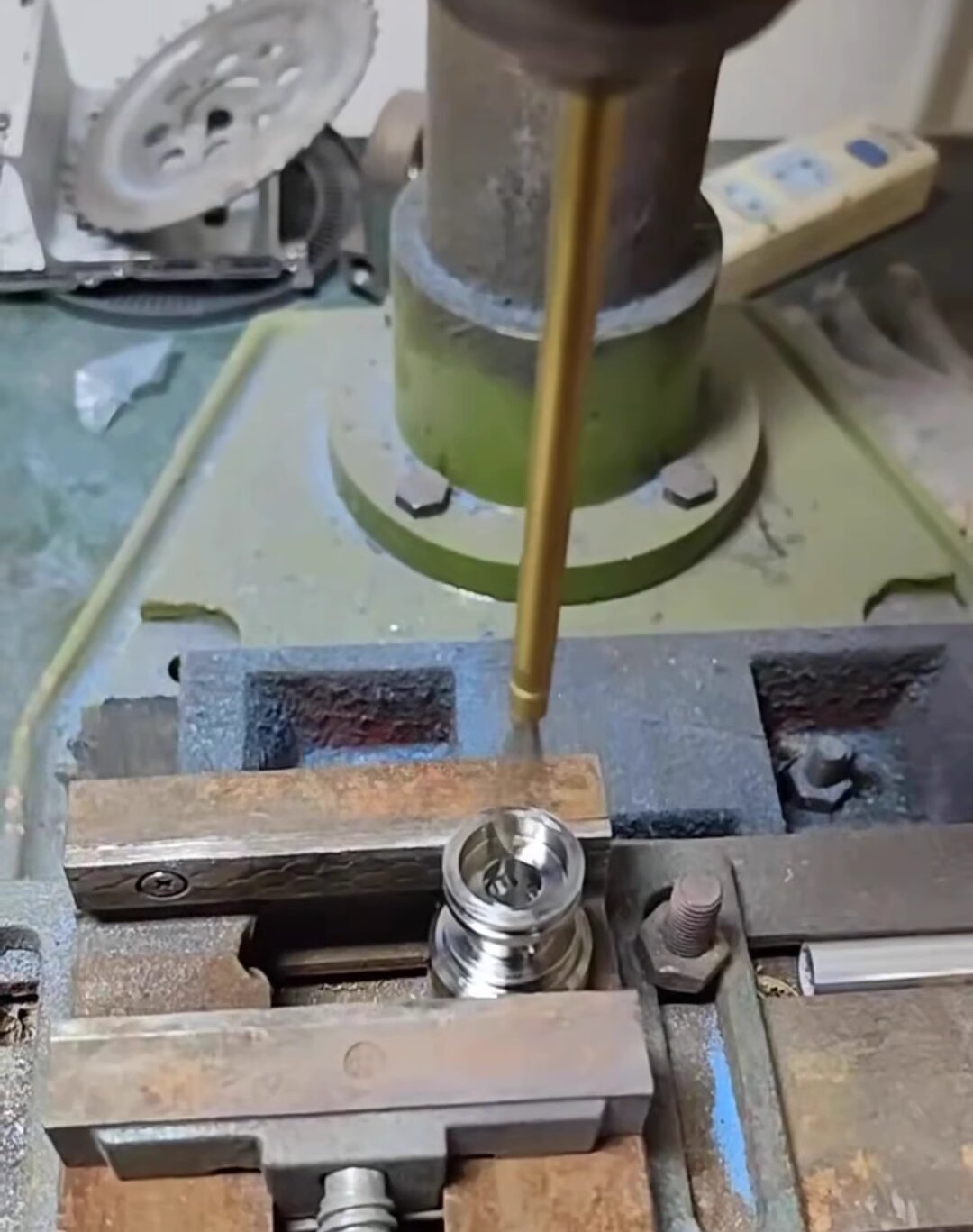 Processed part: The cross hole had all burrs removed, resulting in a smooth and flat surface.